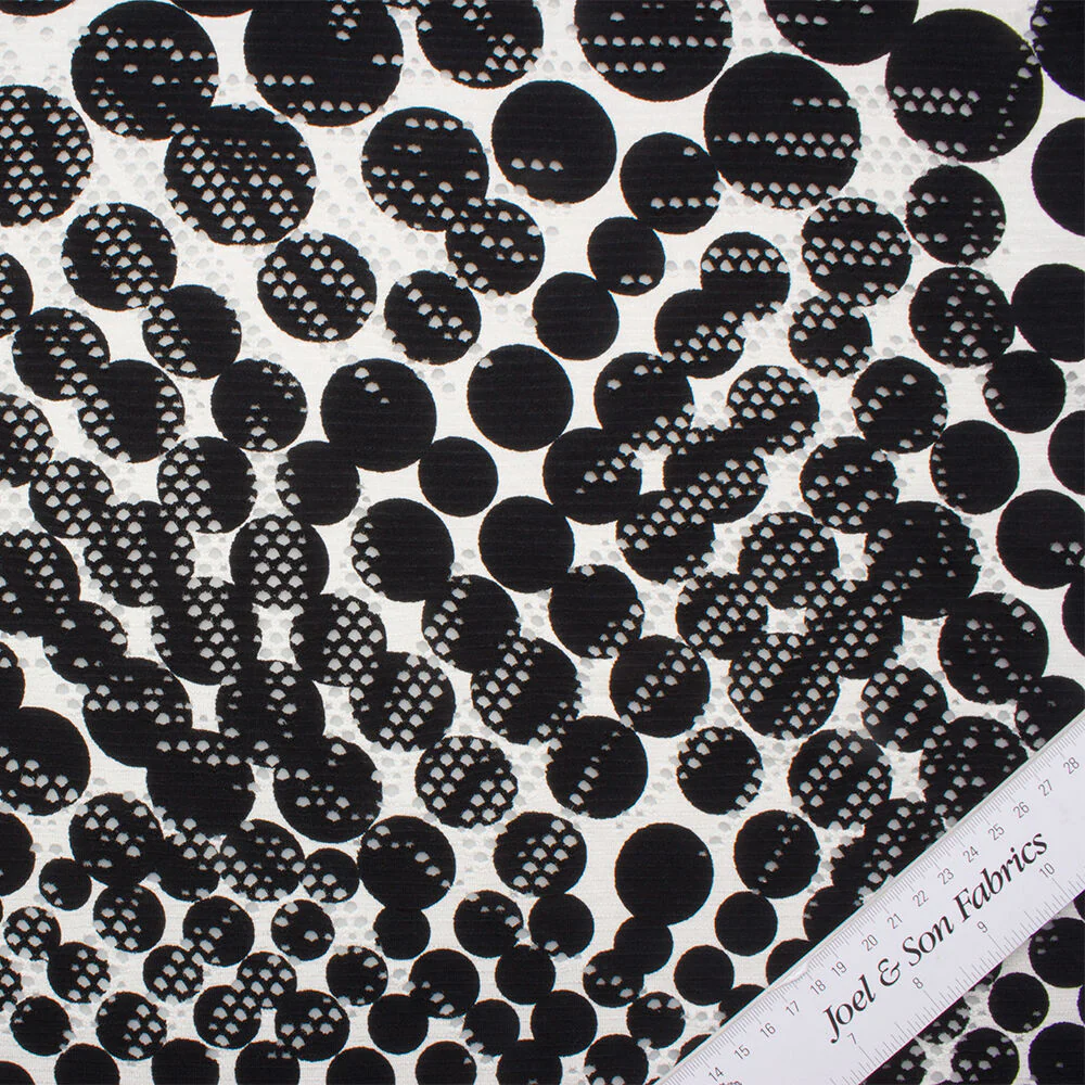 Made in Italy, this is a fun white viscose jersey with black spots by Abraham. With a good 2 way stretch - this jersey is ideal for form-fitting outfits such as dresses and skirts. Available in a variety of colours.
