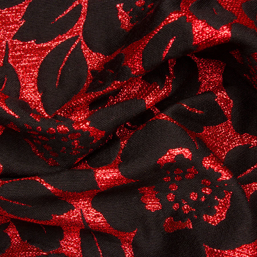 Black Floral on Red Metallic Brocade