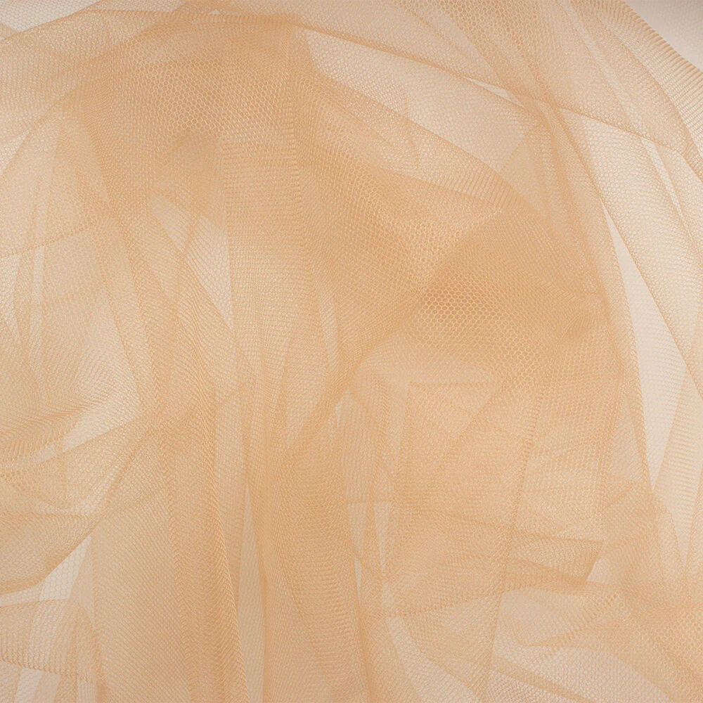 Illusion Tulle is lightweight and extremely fine, but lacks the stiffer nature of other tulles, giving it a softer feel and better drape. It is ideal for bridal veils. This beige colour is ideal for appliqué work - it blends into the skin for a 'nude' appearance.