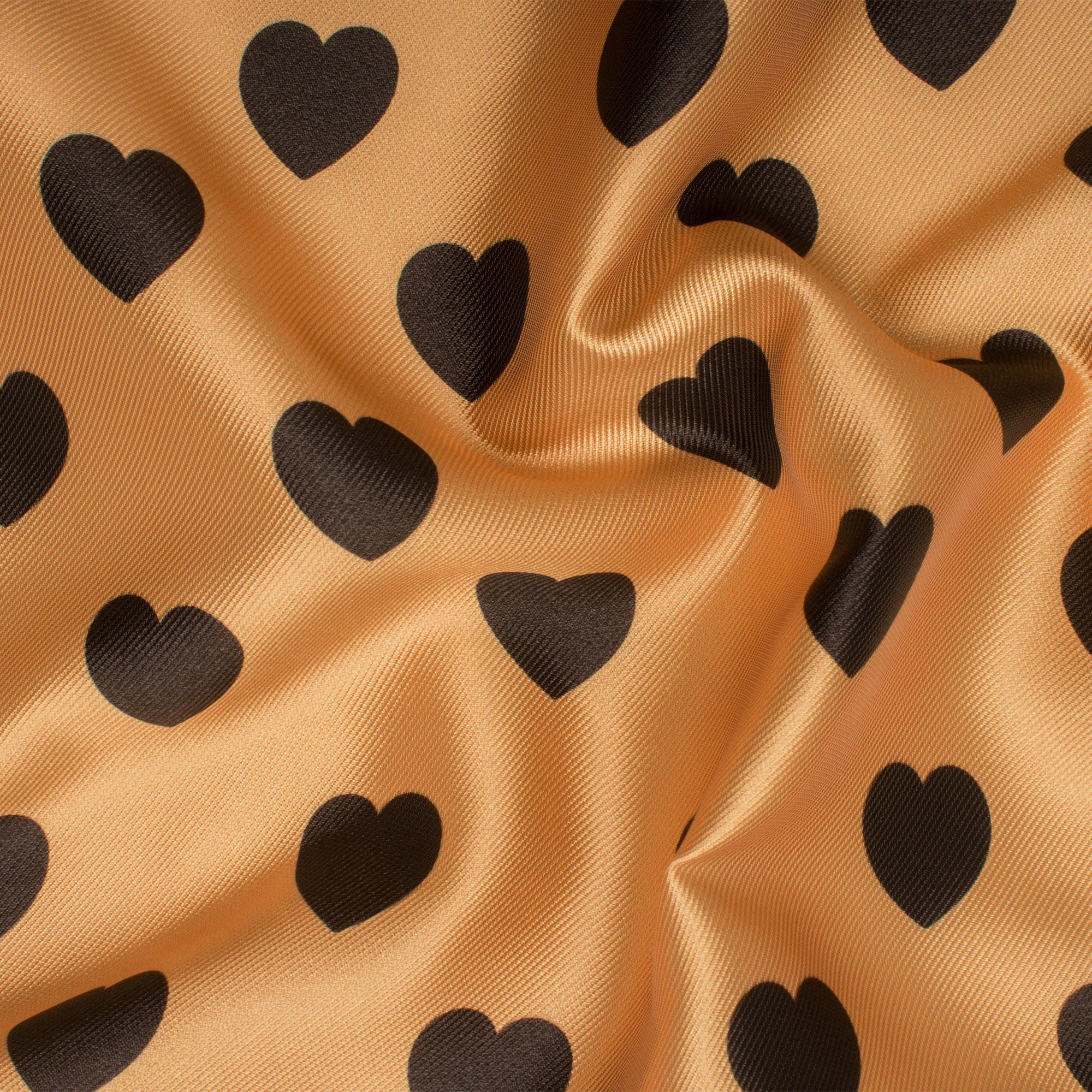 -70%Camel and Bottle Green Heart Poly Printed Twill—