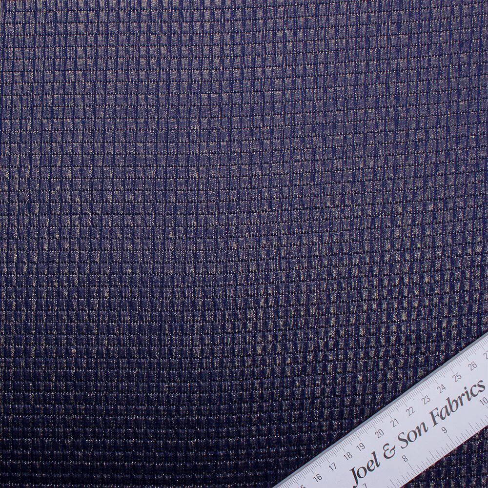 This wonderful blue with gold metallic cloqué is an eye catching, extremely soft fabric. The gold lurex running through creates a gorgeous gold sheen that catches the light. Perfect for jackets and structured dresses - this mixed fibre fabric is lightweight and comfortable to wear.