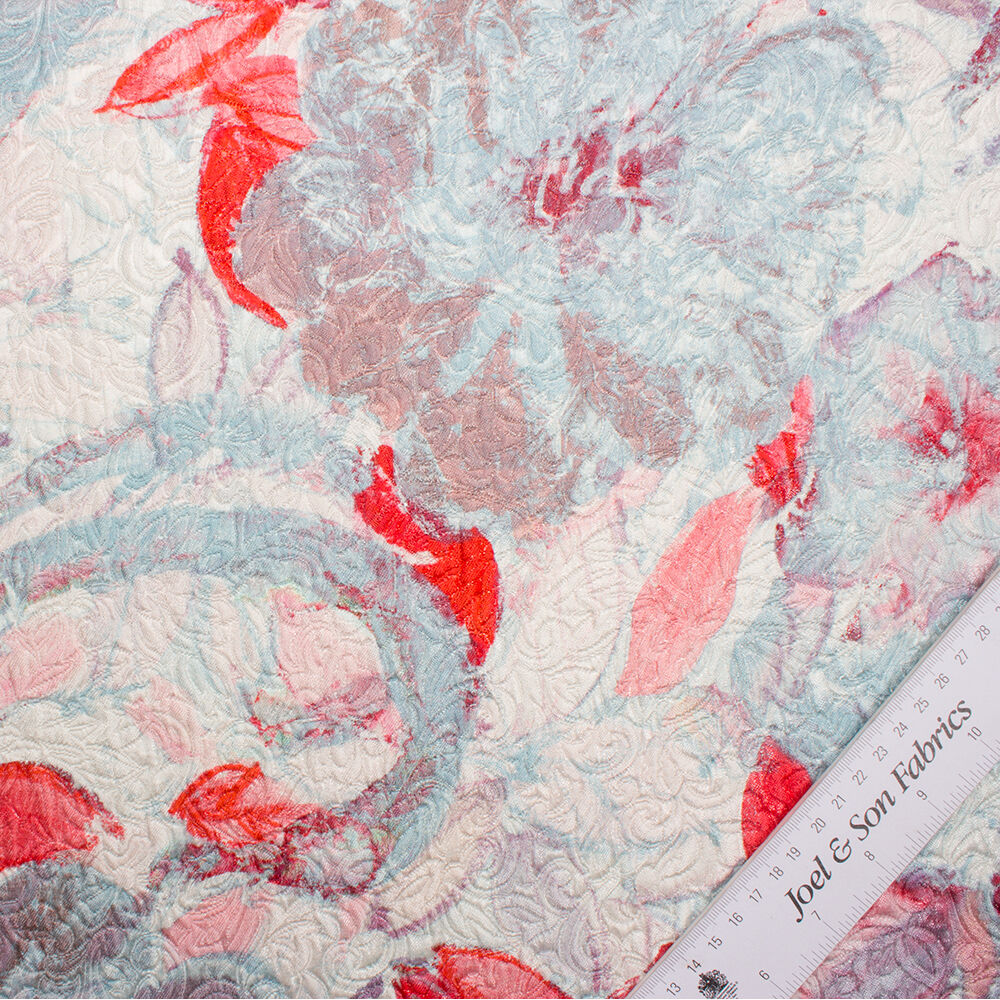 A new woven printed metallic jacquard Cloqué in a soft pink and blue with a translucent yarn creating a stunning wet effect finish. Lightweight, making this fabric ideal for a dress up or jacket and skirt ensemble. Perfect for the Mother of the Bride. New in for Spring/Summer and available in a wide variety of colours.
