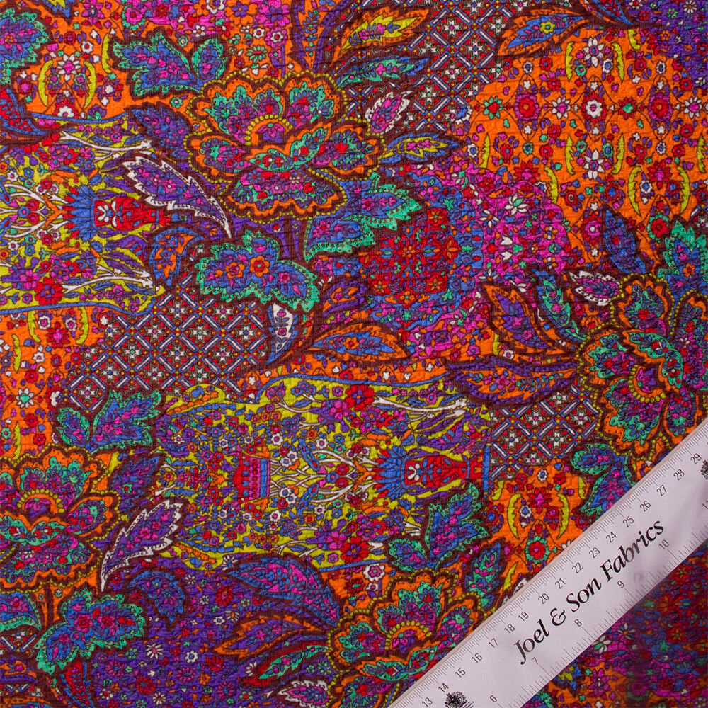 Purple Paisley Printed Cloqué—
