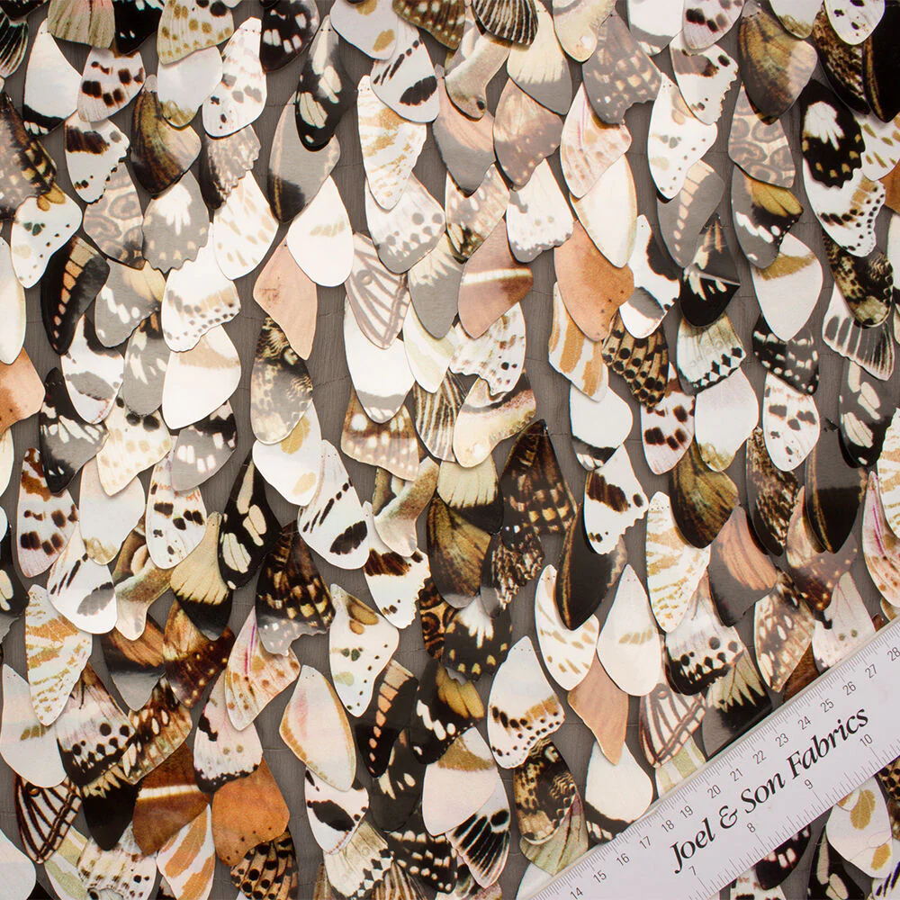 Brown Embroidered Laser Cut Butterfly Wing Fabric
