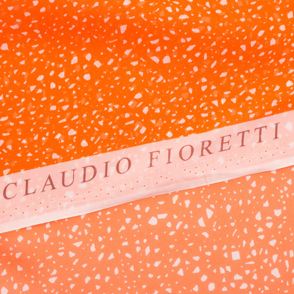 A fun white print on a pure silk bright orange chiffon background by Claudio Fioretti. Elegant yet eye catching, this fabric is a perfect blouse or dress weight. Available in a variety of colours. Take a look at our new full range of printed silks for more inspiration.