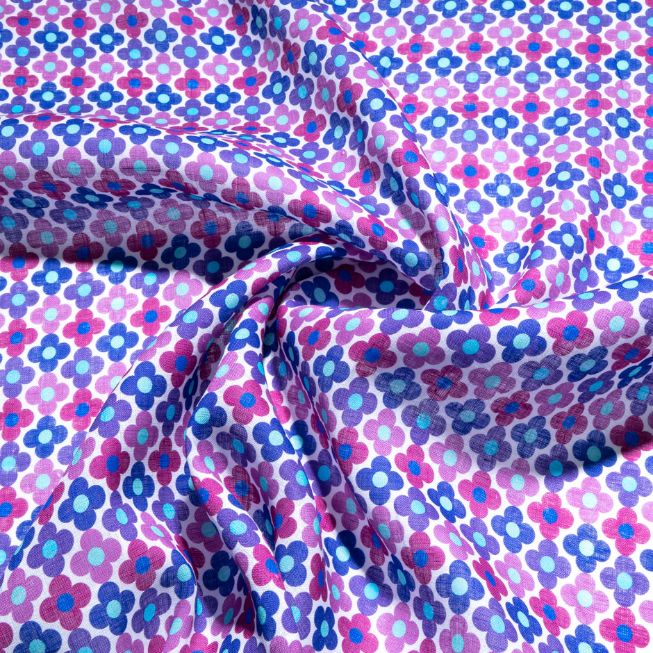 -70%Purple, Pink & Blue Floral Geometric Printed Linen—