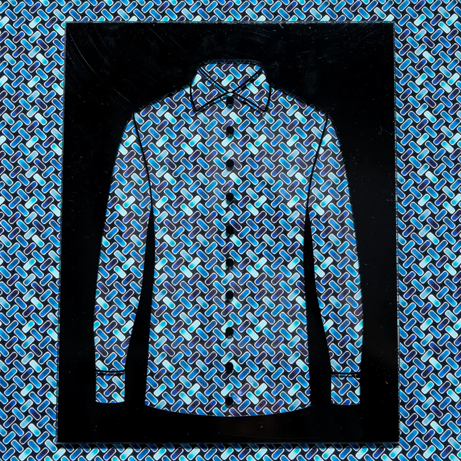 A two-tone blue geometric print on a midnight blue pure cotton. Available in a variety of colours and prints, this cotton fabric is ideal for shirts as well as nightwear.