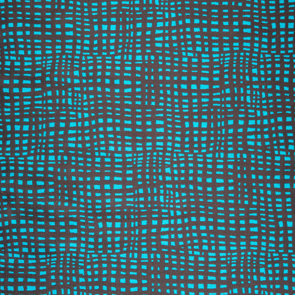 A chocolate brown and rich turquoise abstract grid design reversible brocade. Durable, with medium structure, this fabric is ideal for fuller dresses, jackets and coats and available in a variety of colours and designs.