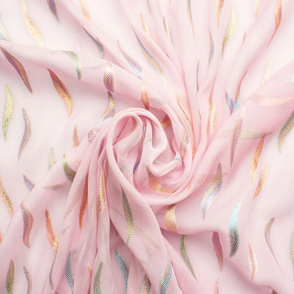 Multi-Coloured Metallic Pale Pink Silk Georgette (A 1.95m Piece)
