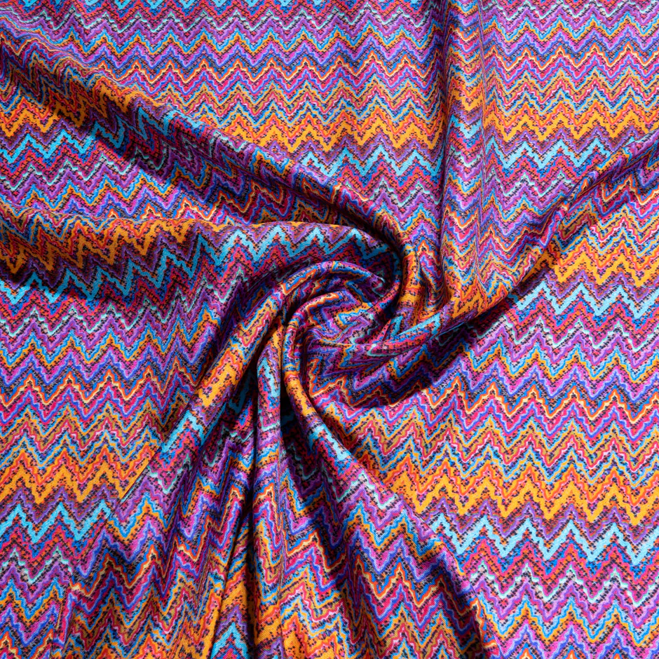 Multi-Coloured Zig Zag Printed Pure Silk Twill—