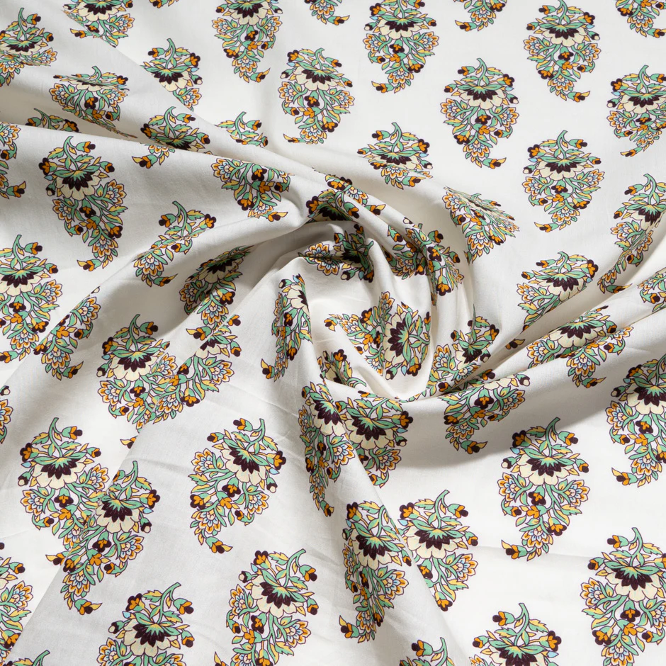 Multi-Coloured Floral Printed Ivory Pure Cotton