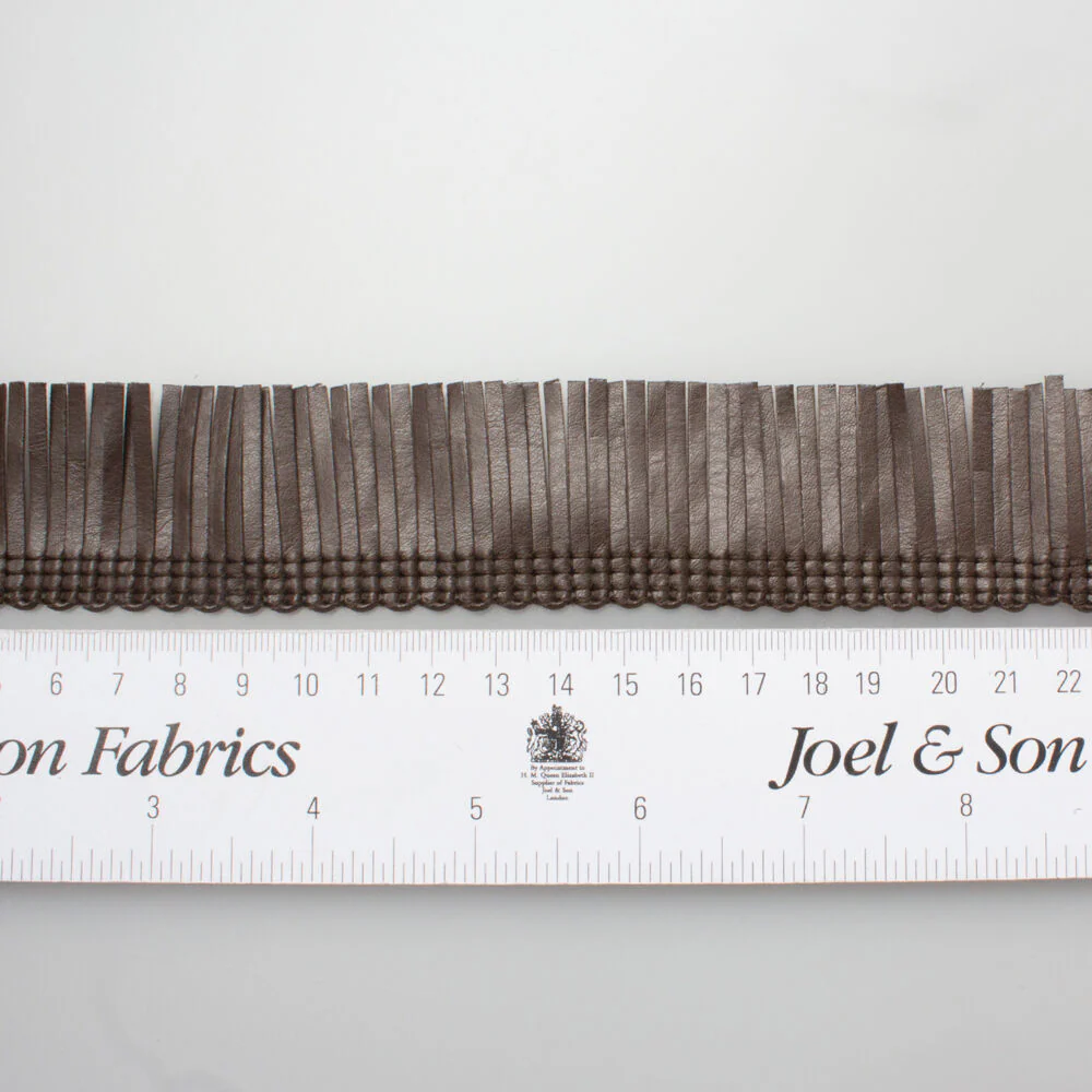 A fun chocolate brown leather look fringed trim. This trim is wearable all year round and will transform any outfit into something fabulous! Available in a variety of colours. Take a look at our full range of trims for more inspiration.